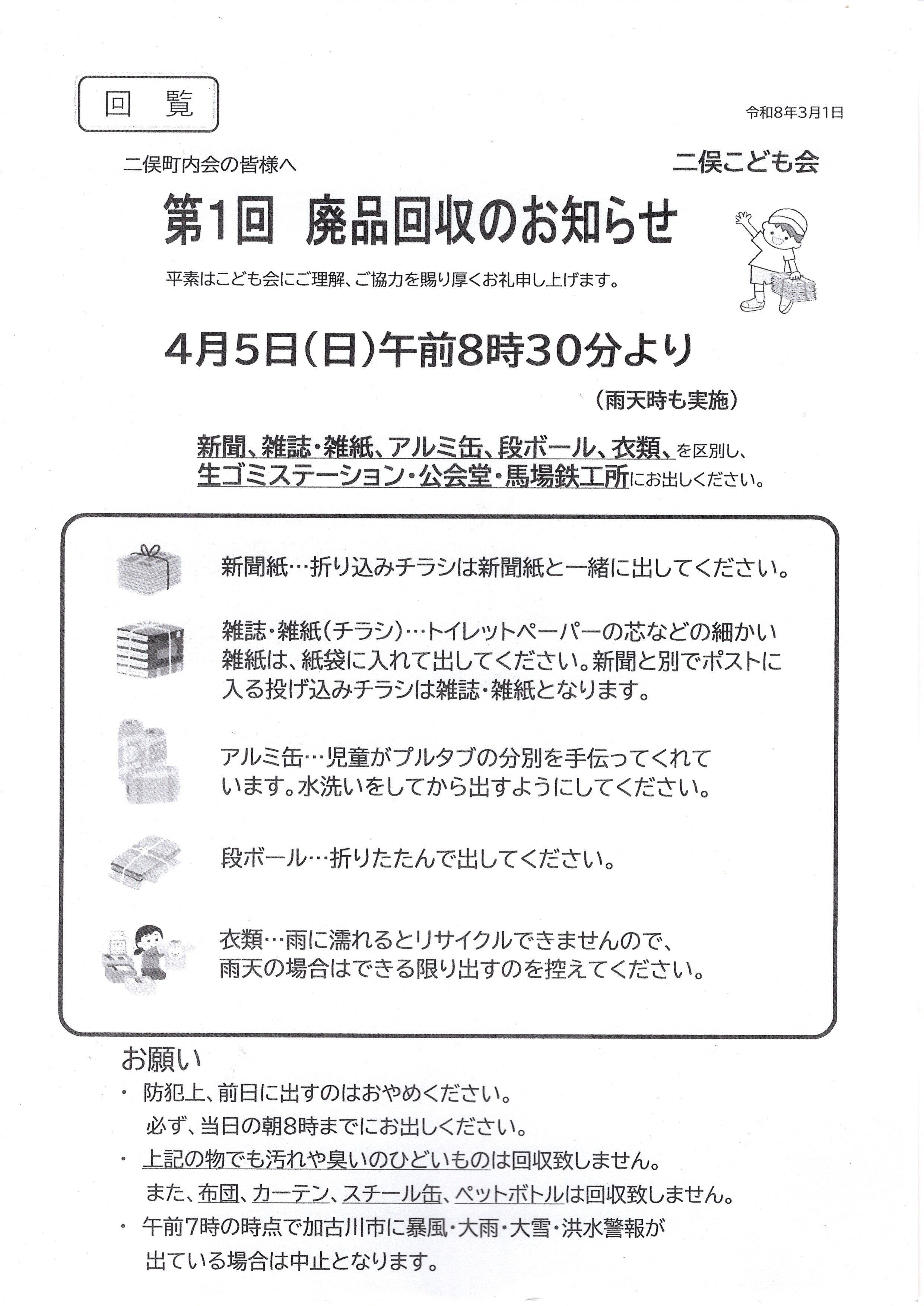 廃品回収は雨天でも決行します