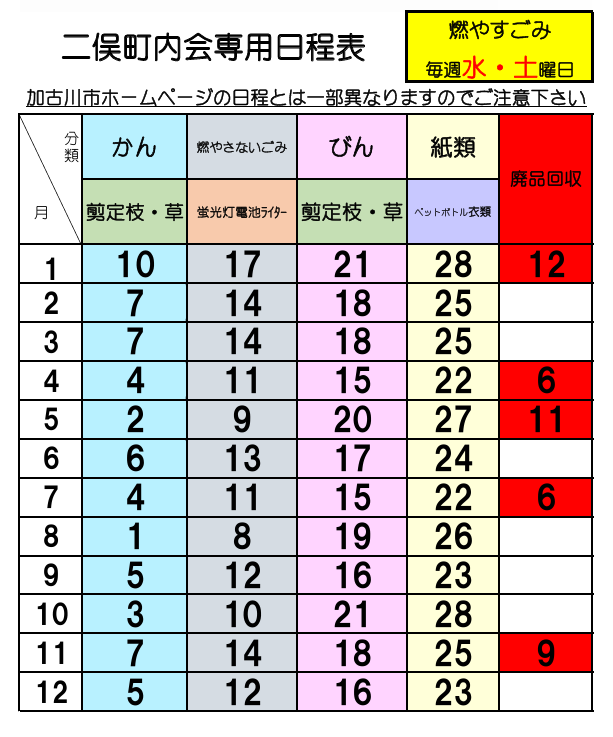 1)紙の回収日が月に1回となりました。