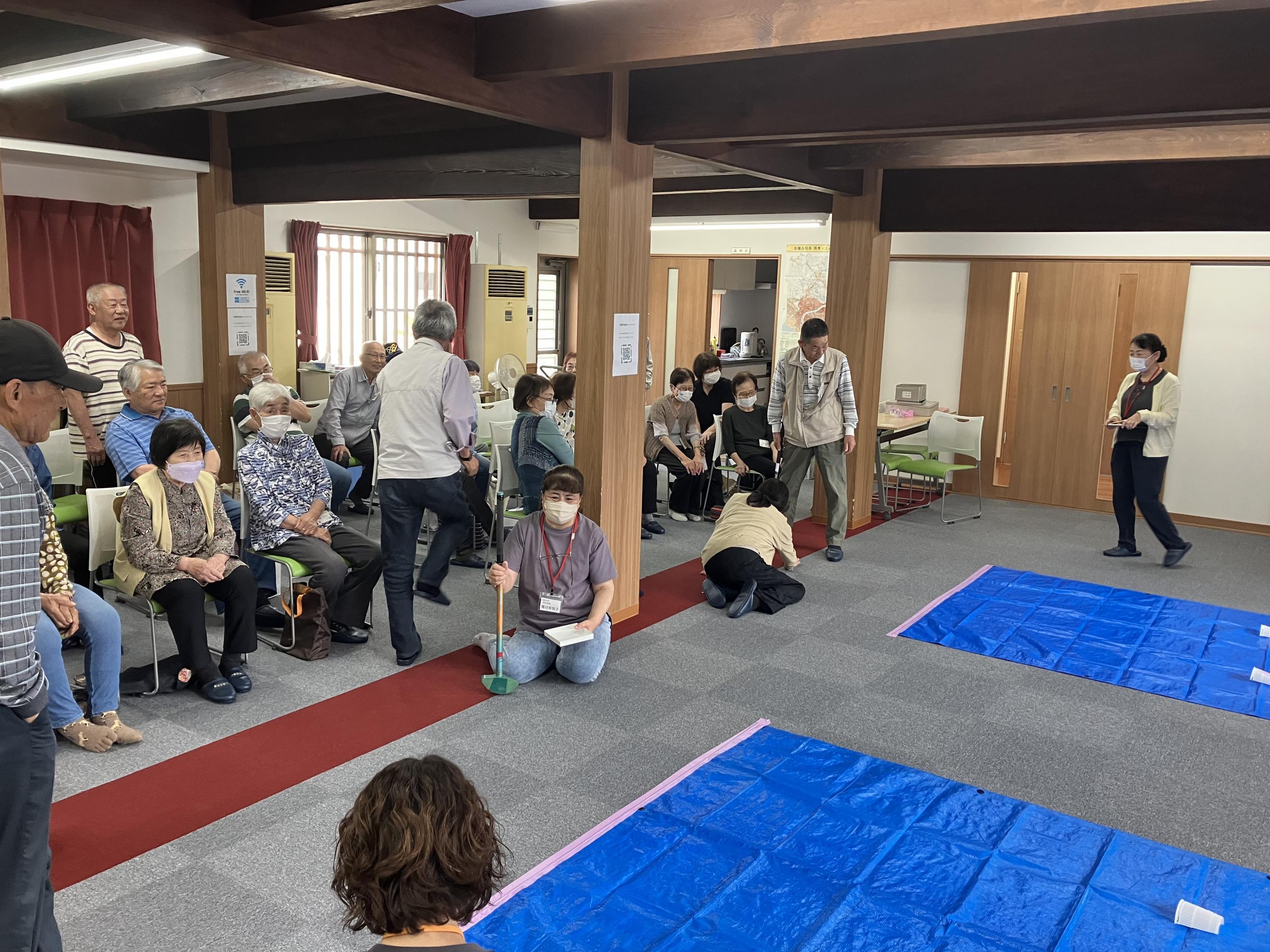 その後包括支援センターによる30問程度のクイズ等で楽しみました。残念ながら全問正解者はいなかったようです。最後は全員で輪投げ大会を実施。15隣保の森さんが1位でした。