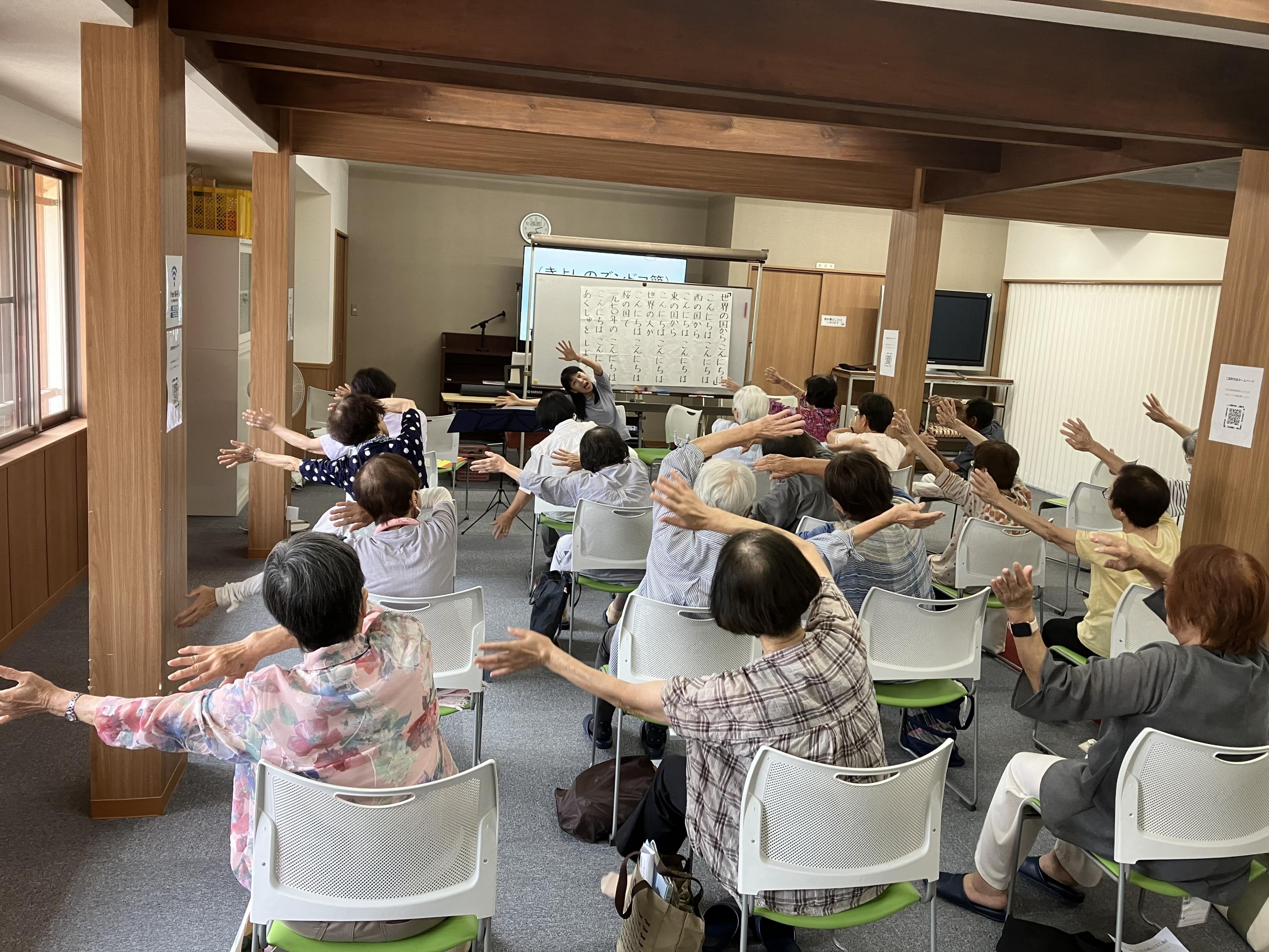 2部では歌に合わせて手と足を使う「いきいき若返り体操」を実施しました。