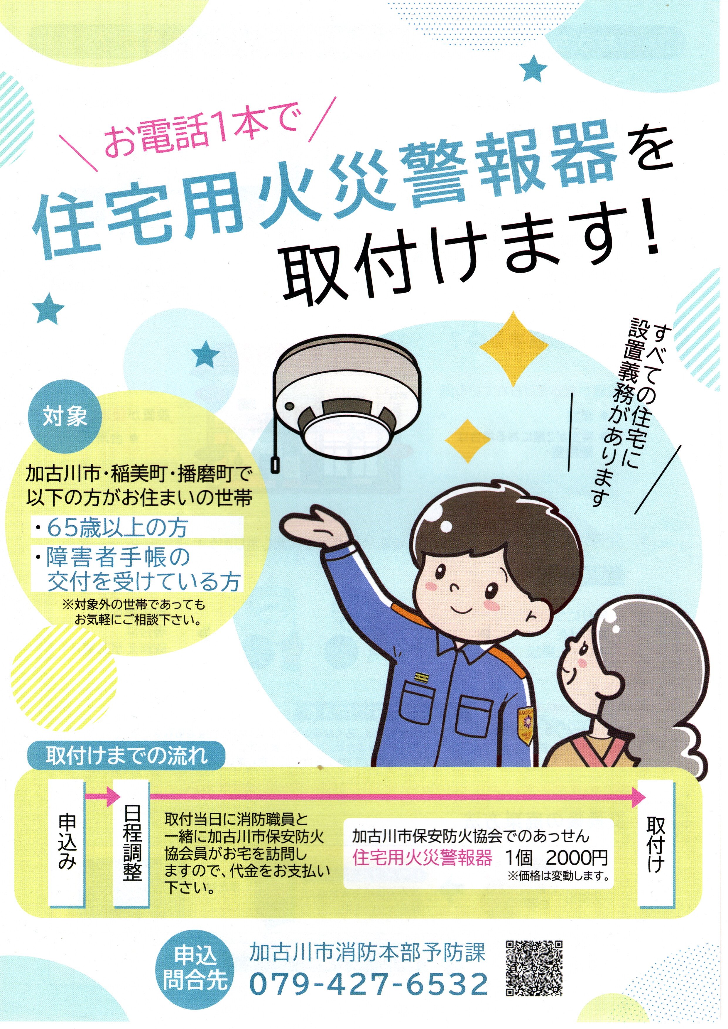 65歳以上のお宅には訪問の上取付迄してくれます。高齢者が脚立に上がって作業する必要がありません。値段的にもお得感があります。対象以外の方も問合せしてみてください。