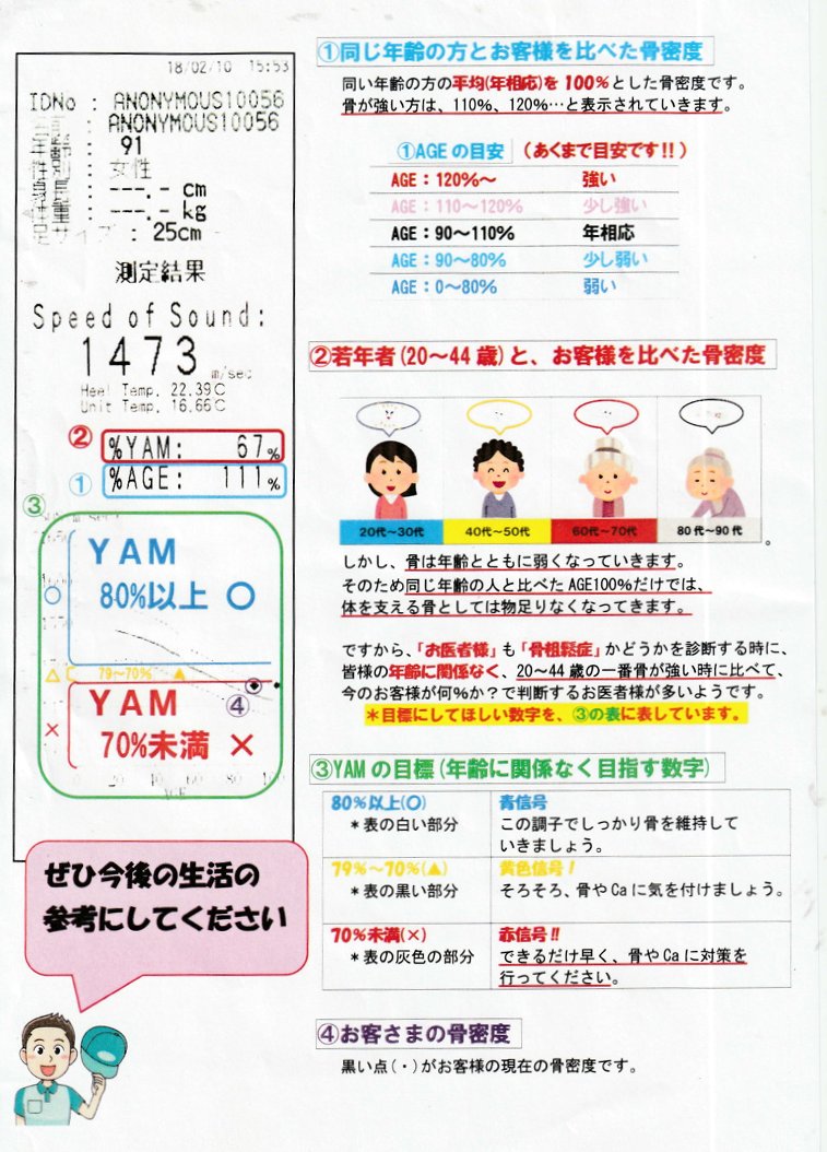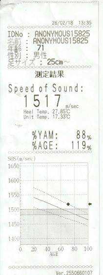 上は私の測定結果です。年齢の割には強固な骨密度であることが分かりました。親に感謝。