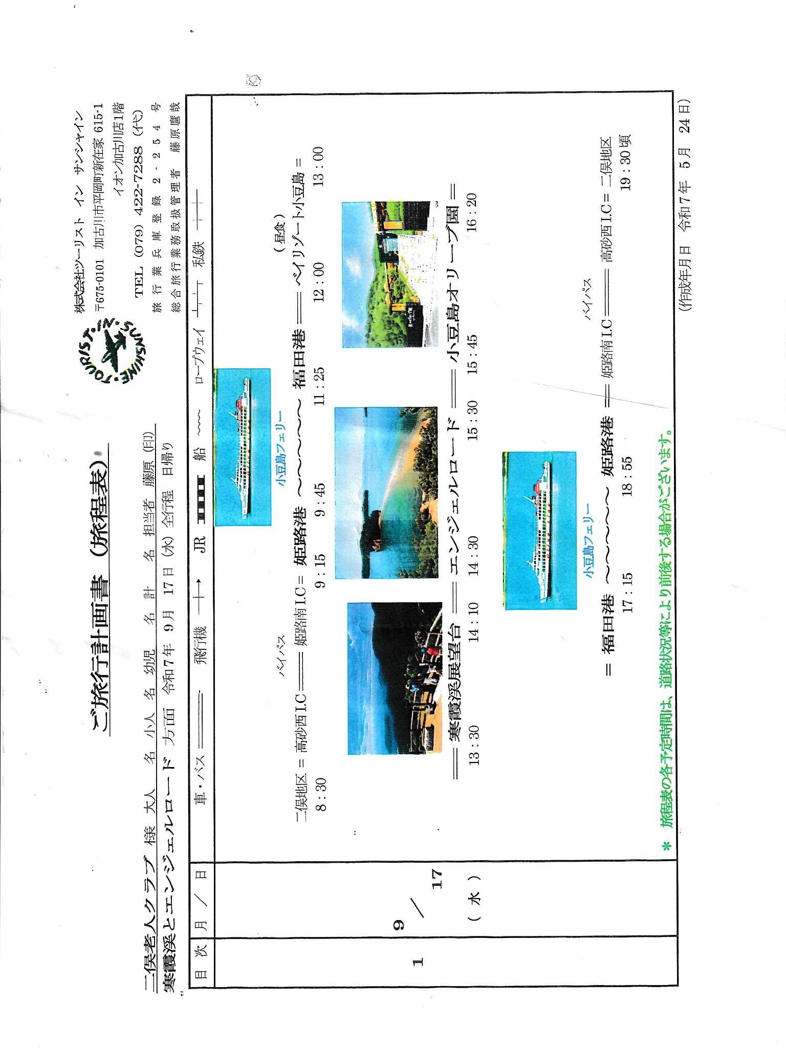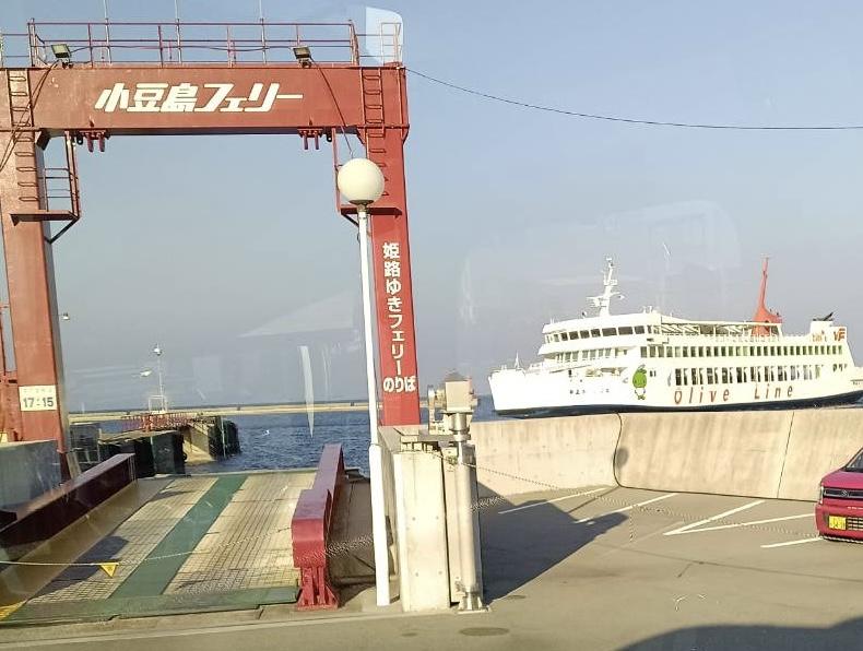 姫路港からフエリーで小豆島へ 山と海とオリーブの島を遊覧。その切り立った山々、入り組んだ入江、そして緑の樹々、青い海それらの自然の景観の移り変わりに満足した一日でした。幹事さんありがとうございました。
