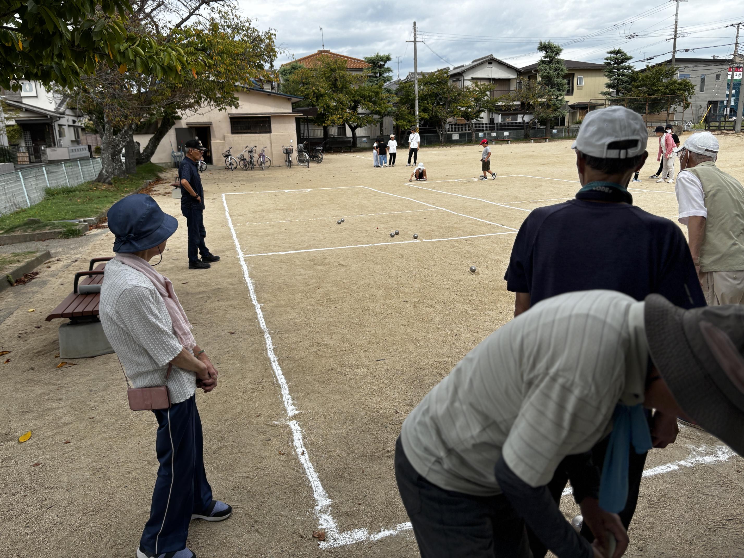 9月28日の大会に向けての老人クラブによる子ども会へのペタンク入門講座を行いました。計25名(子供出場者9名)で楽しいひと時でした。