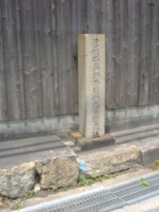 このうち、①・②は百間蔵(ひゃっけんぐら)と呼ばれていた。今は、三菱製紙の工場となり蔵跡をしめす碑石(写真)が道路わきにあるだけである。