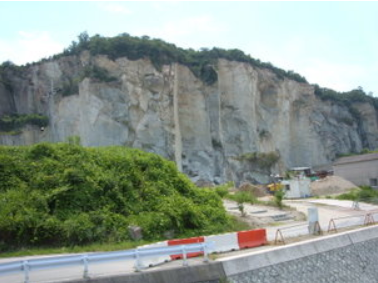古代の加古川の主流は、現代の加古川よりも西をながれていたと想像される。河口は、竜山の採石場(写真)のあたりだったのかもしれない。万葉集で歌われている加古川の三角州「ナビツシマ」が、前方にひろがり、このあたりは、加古川の河口というよりも、海がせまり湾のような地形をつくっていたようだ。そこに、竜山石の採石場があった。