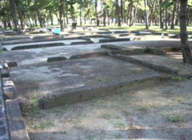 写真は、教育隊の兵舎跡である。地元の人は「浜の宮兵舎」と呼んでいる。終戦後の一時期、加古川飛行場を管理した連合国占領軍が、兵舎として利用したこともあったという。現在、この場所に「陸軍航空通信学校尾上教育隊」と「陸軍第百四教育飛行隊」の碑が建てられている。